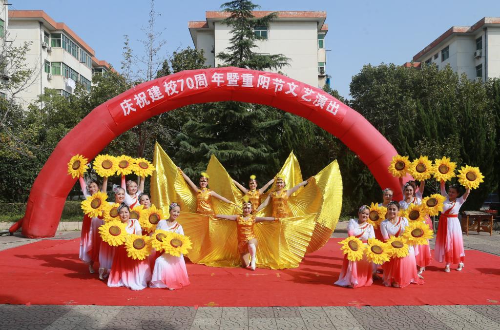 10月21日下午,离退休工作处在同乐园广场举办了庆祝建校70周年暨重阳节文艺演出。学院党委副书记贺天柱向离退休老同志们致以节日问候,并与200余名老同志欢聚一堂,观看演出。